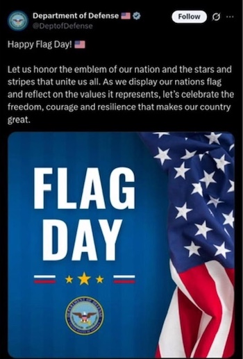 I russi hanno scherzato sul poster del DoD Flag Day con una sola bandiera americana mentre sembrava presentare due bandiere russe, una su entrambi i lati delle tre stelle