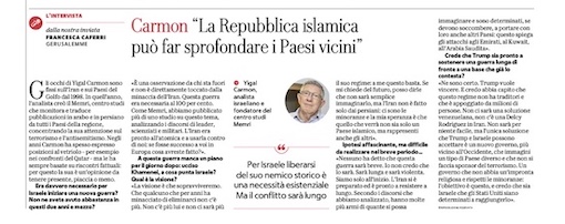 Gli occhi di Yigal Carmon sono fissi sull’Iran e sui Paesi del Golfo dal 1998. In quell’anno, l’analista creò il Memri, centro studi che monitora e traduce pubblicazioni in arabo e in persiano da tutti i Paesi della regione, concentrando la sua attenzione sul terrorismo e l’antisemitismo. Negli anni Carmon ha spesso espresso posizioni al vetriolo – per esempio nei confronti del Qatar – ma le ha sempre basate su riscontri fattuali: per questo la sua è un’opinione da tenere presente, piaccia o meno.